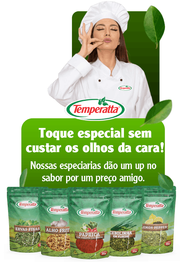 • Tempero completo com pimenta Temperatta para carnes e aves.