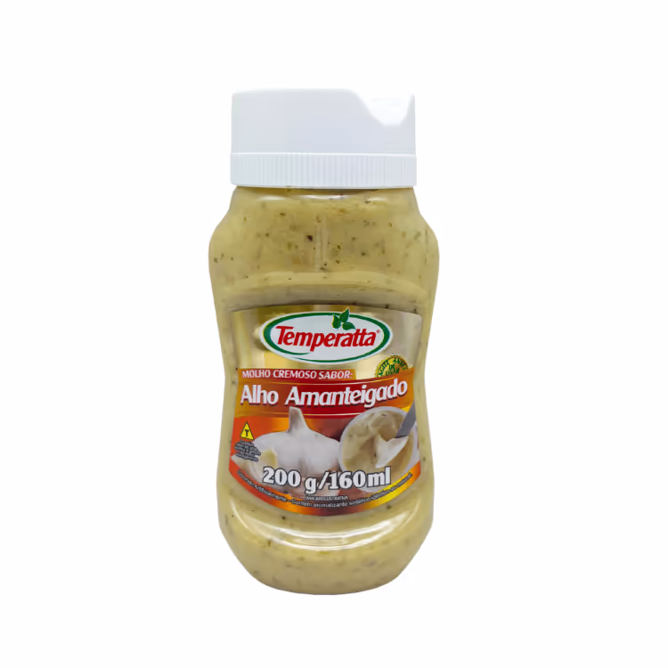 Caixa com 12 pets de 200g  do produto Molho Cremoso de Alho Amanteigado
